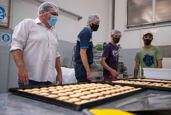 Ayer, el intendente Guillermo Montenegro, acompañado por el Secretario de Desarrollo Productivo e Innovación, Fernando Muro, recorrió las instalaciones de Natural Sur, observando parte del proceso de fabricación de sus productos libres de gluten de alta calidad.